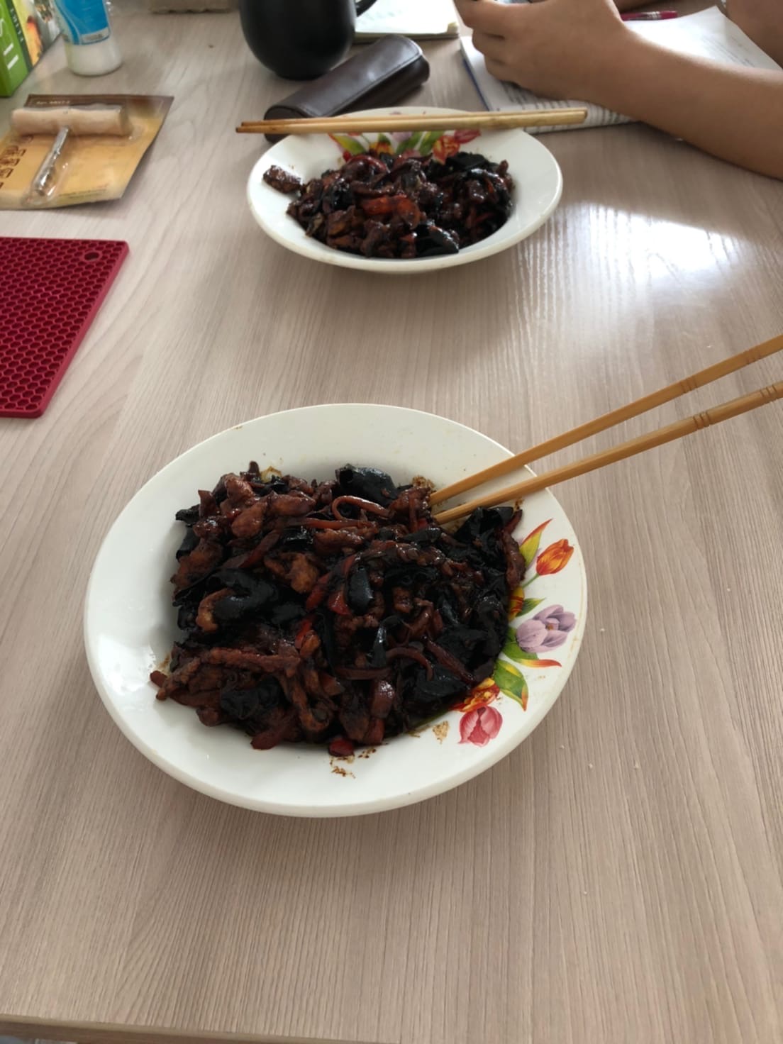 Мы готовим себе еду раздельно. Когда мы только заселились, она приготовила мне мое любимое китайское блюдо — жареный рис. Бывает, Синь Синь приходит с работы голодная и ест то, что я приготовила. Конечно, она мне предлагает свою еду, но мне такое не нравится. Все-таки китайские блюда очень необычные.