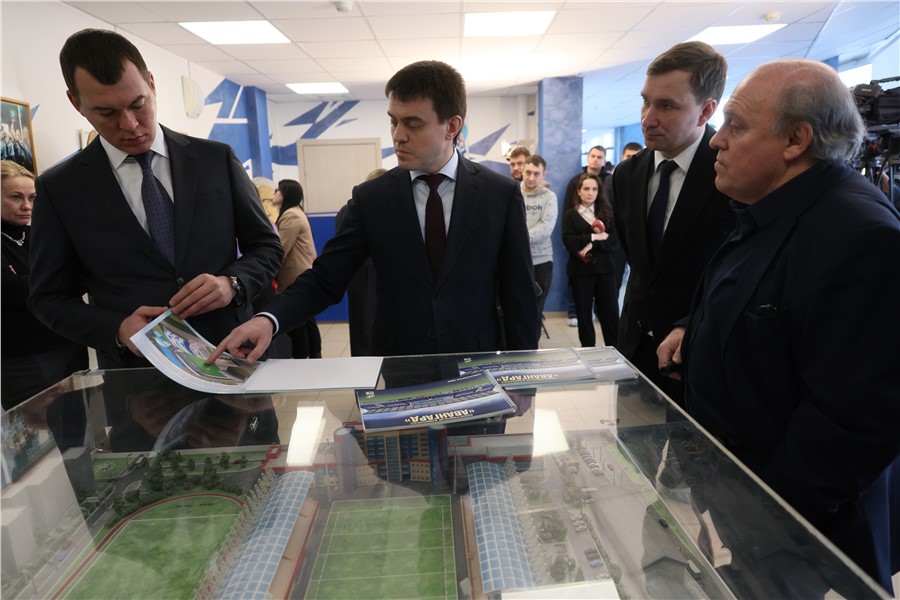 В субботу Михаил Дегтярев вместе с губернатором Красноярского края отправился на юг региона, где познакомился с тем, как работают спортивные объекты в Минусинске. Министра пригласили в физкультурно-спортивный центр «Южный» им. Л.А. Буданова.