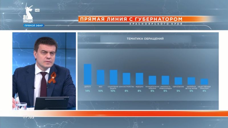 Прямая линия Михаила Котюкова прошла 29 апреля. Всего главе региона направили больше 3,7 тыс. вопросов через колл-центр и чат-бот в телеграме. Самыми активными оказались жители Красноярска, Емельяновского, Сухобузимского и Березовского районов, Бирилюсского муниципального округа, Канска, Ачинска, Норильска и Лесосибирска. От них поступило наибольшее количество вопросов.