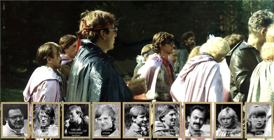 «С костюмами приходилось выкручиваться. Во-первых, не было нужных материалов, во-вторых, не было и понимания, какими они должны быть. Тем не менее, я не могу сказать, что костюмирование было каким-то плохим — на 137 человек было достаточно много людей и в доспехах, и в кольчугах. Допустим, участие принимал знаменитый сейчас оружейник из Красноярска Игорь Малик. В то время он был фрезеровщиком на Красмаше, а к нам он приехал в полном доспехе, что было большой редкостью», — поясняет Михаил Гончарук.