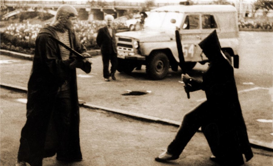«Девушка с Сахалина привезла с собой свору ребят, которую мы решили сделать эльфами. Утром детишки выбежали потренироваться с мечами и копьями на набережную. Естественно, подъехал милицейский УАЗик. Но вместо того, чтобы остановить фехтовальщиков, патруль стоял и просто заинтересованно наблюдал», — с улыбкой вспоминает Михаил Гончарук.