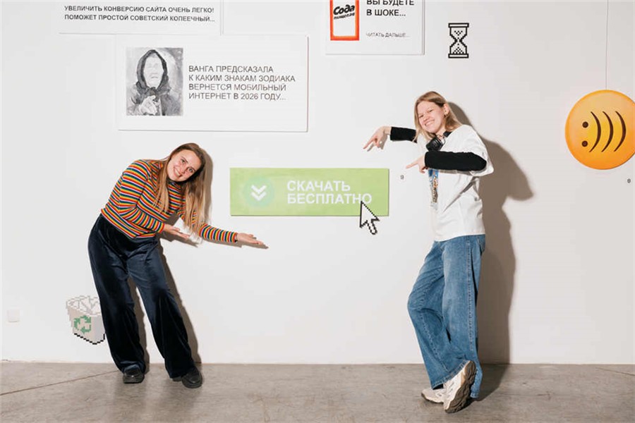 «Условно, выставка у нас разделена на два пространства. В первом мы рефлексируем и немножко, можно сказать, ностальгируем на тему интернета, которого уже нет, а во втором с помощью уже новых современных инструментов приходим к тому, что же с интернетом стало сейчас», — объясняет куратор.