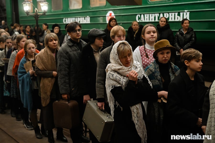 Участники увидели сцены прощания матерей с детьми, которых военные отправляли в неизвестность. Внутри вагонов их ждали рассказы о судьбах маленьких ленинградцев, а в завершение все участники получили свой кусочек «блокадного хлеба».