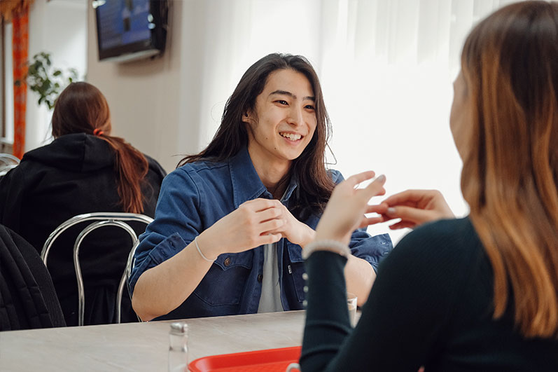 Просто учиться в университете — это тяжело, нужно отдыхать и улыбаться. Кроме учебы я часто встречаюсь с друзьями, и я чувствую себя весело и прекрасно. Мы готовим разные блюда, играем в мафию. Однажды мои красноярские друзья позвали меня есть суши. Я несколько раз переспросил: «Они точно настоящие?». Они отвечали: «Да-да». Но когда мы пришли в ресторан, и я увидел их — ого! Мне было страшно их есть. Я попробовал, было вкусно, но это совсем другое блюдо.