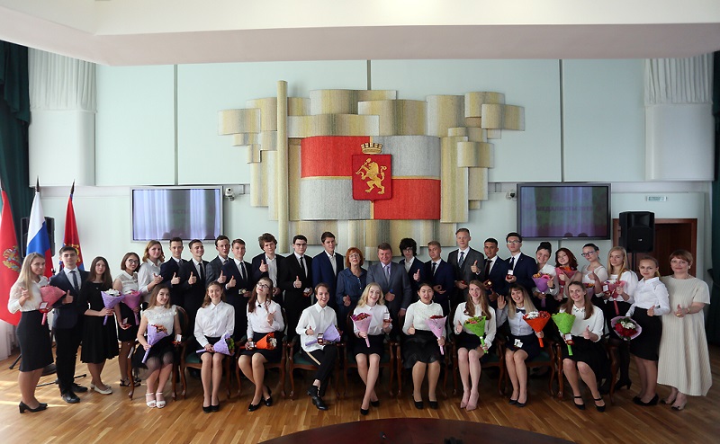 Мэр Сергей Ерёмин наградил медалью «За особые успехи в учении» лучших учеников, которые закончили школу с отличием.