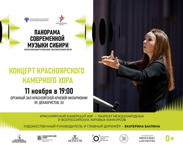 11 ноября в 19:00 на сцене Органного зала Красноярской филармонии состоится концерт Красноярского камерного хора, который входит в программу Межрегионального музыкально-образовательного форума «Панорама современной музыки Сибири». Проект реализуется при поддержке Президентского фонда культурных инициатив.