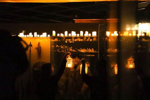 Экскурсия проходит в формате рассказа в темноте, а путь по экспозиции освещается светодиодными свечами и фонарями.