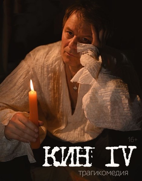 «Кин IV» написан известным драматургом Григорием Гориным по мотивам пьесы Александра Дюма «Кин, гений и беспутство». История об английском актёре Эдмунде Кине насыщена юмором и одновременно драматична, ибо драматична была судьба великого Артиста, который закончил свои дни в нищете и забвении.