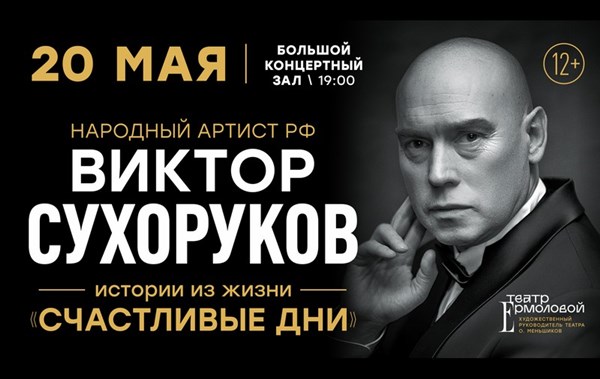 Виктор Сухоруков в моноспектакле «Счастливые дни». 20 мая 2026 года на сцене Большого концертного зала! Его имя – синоним творческой неуспокоенности, работоспособности, человеческой и актерской открытости. Что может вдохновить такого известного актера на создание творческого вечера? Для Виктора Сухорукова таким поводом послужило посещение дома-музея Юлиана Семенова в Севастополе, стены которого увешаны фотографиями с автографами известных людей.