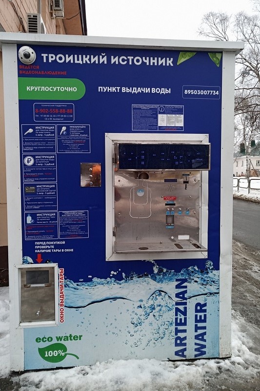 Я впервые видела горожан, покупающих в больших объемах воду домой. В Южном на улицах стоят небольшие будочки-автоматы с артезианской водой и пластиковой тарой, можно купить, сколько требуется. Туристы, несущие в каждой руке по пирамидальной трехлитровке — самые частовстречающиеся персонажи на просторах острова.