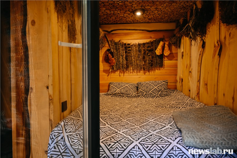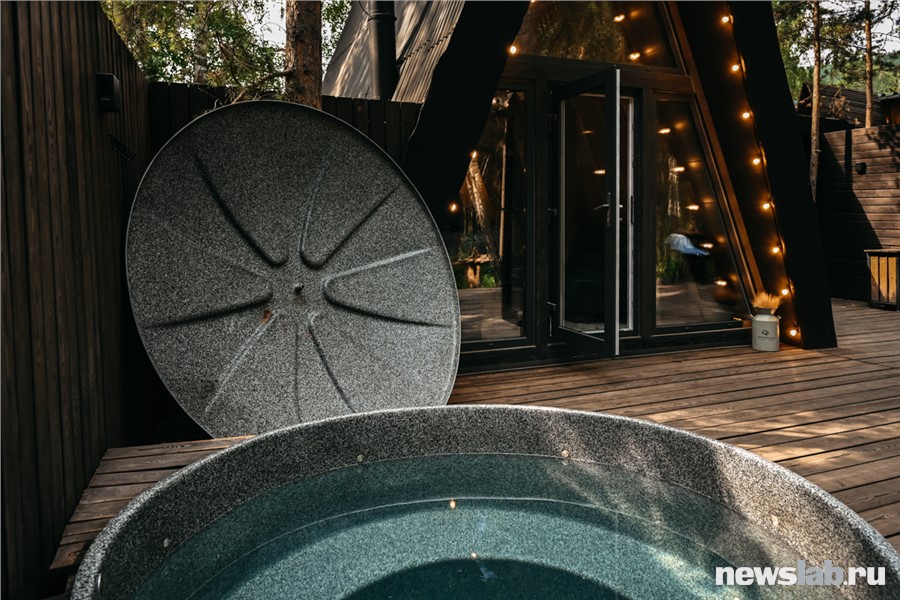 Ну, и какой же отдых без бани? В Shalash and forest настоящая русская банька находится прямо в доме, она наполнена ароматом можжевельника. А после парения гости могут расслабиться в купели под открытым небом. Температуру можно настроить по желанию: купель доступна круглый год, и в зиму можно насладиться горячей водой на воздухе.
