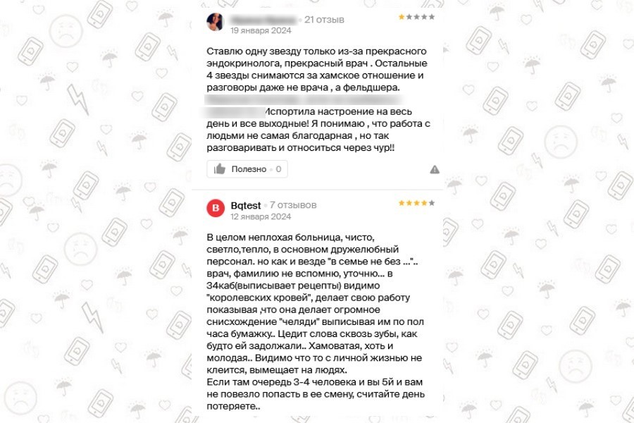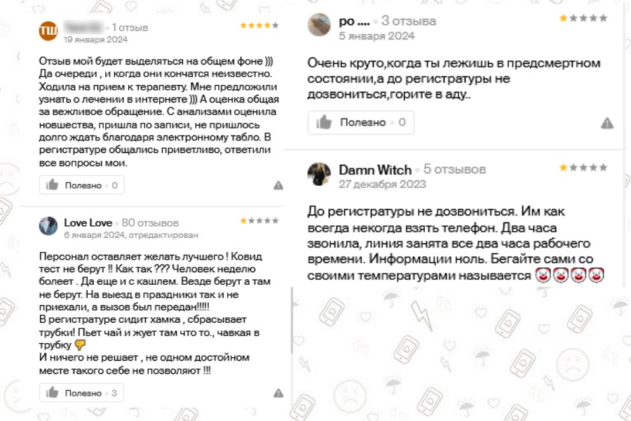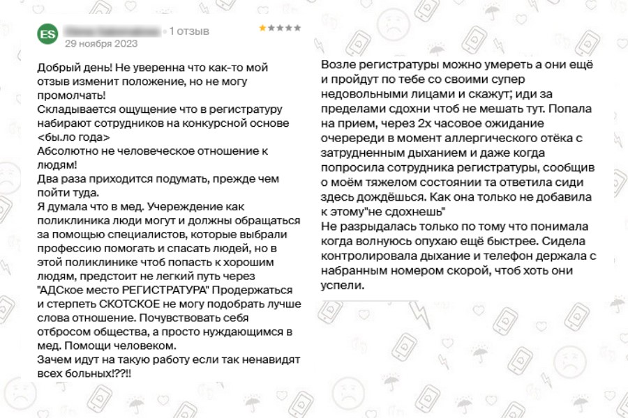 Жители города характеризуют ее как «ужасное место», но отмечают, что при этом там работают «хорошие врачи». Если внимательно почитать отзывы, то становится понятно, что главная проблема этого лечебного заведения — персонал регистратуры. Как обычно, страдает организация самых простых в решении процессов — записи к врачам, приема экстренных больных, которые обращаются без предварительной записи и т.д.
