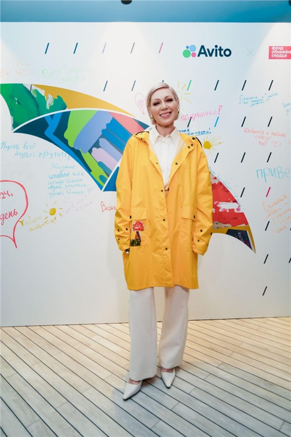 Плащи из непромокаемой ткани для детей и взрослых представлены в шести цветах. Над коллекцией работала модный питерский дизайнер и подруга фонда «Обнаженные сердца» Наташа Туровникова. Сегодня в наборе к каждому дождевику предлагаются специальные маркеры для кастомизации и дополнения принта собственными рисунками. Первый плащ от Натальи Водяновой и ее дочери ушел с молотка за 25 тыс. рублей прямо в офисе Avito на Лесной.