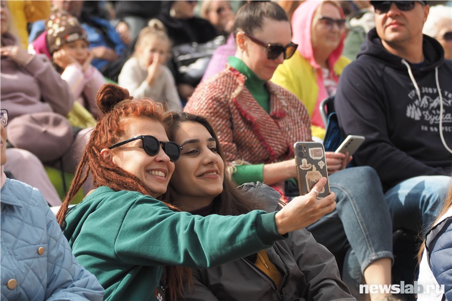 К моменту начала импровизированный концертный зал, созданный у подножья горнолыжного склона, был полон и люди продолжали приходить.