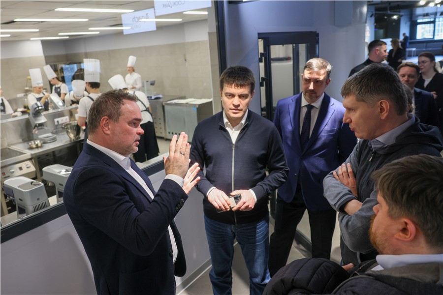 В завершение визита в Красноярск министр экономического развития РФ Максим Решетников и губернатор Красноярского края Михаил Котюков побывали в Институте гастрономии Сибирского федерального университета. Это первый в России практико-ориентированный образовательный проект, дающий высшее образование для специалистов в сфере гостеприимства.