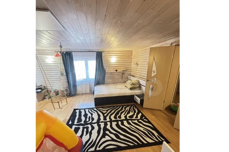 Двухэтажный дом расположен в Емельяново. В объявлении пишут, что он подходит не только на лето, но и для круглогодичного проживания. Есть большая летняя беседка и веранда с отоплением. В дом проведены вода и электричество, установлены теплые полы, отопление обеспечивает котел.