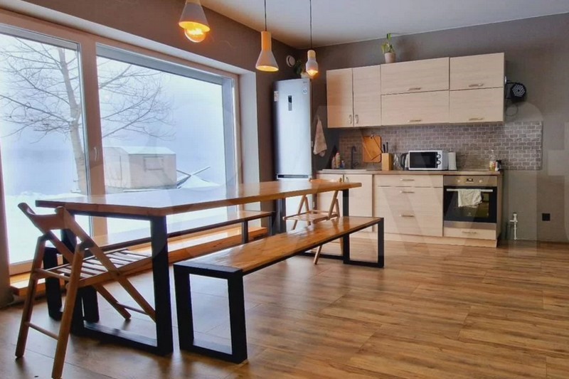 В ванной уложен кафель. На кухне есть посудомоечная машина, микроволновка и холодильник. Стоит дом 50 тыс. рублей в месяц.