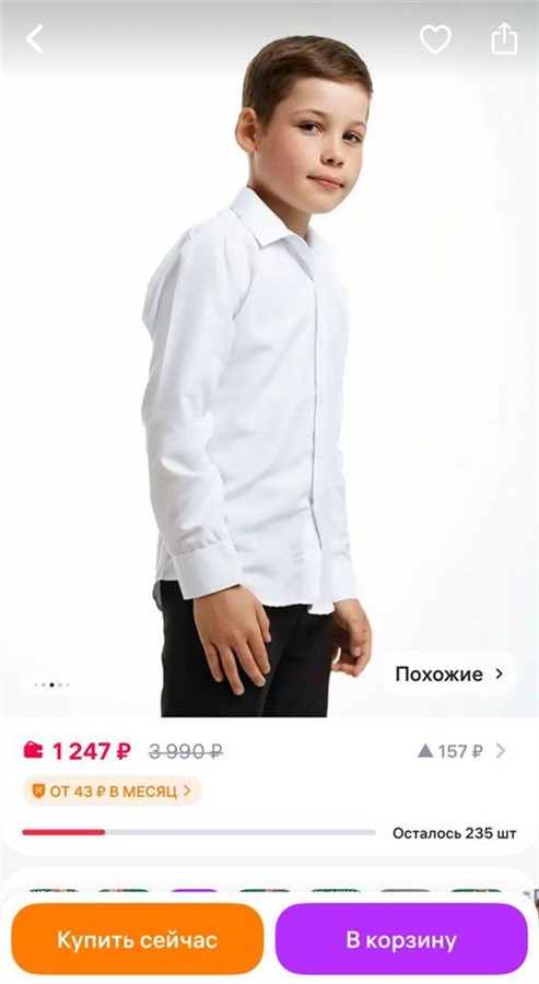 Для мальчиков ситуация похожая. Цены на брюки удивляют — можно найти как за 900 рублей, так и за 3500. Рубашки — 860-1250 рублей. Если школьный дресс-код требует пиджак, он добавит к чеку еще минимум 1500 рублей.