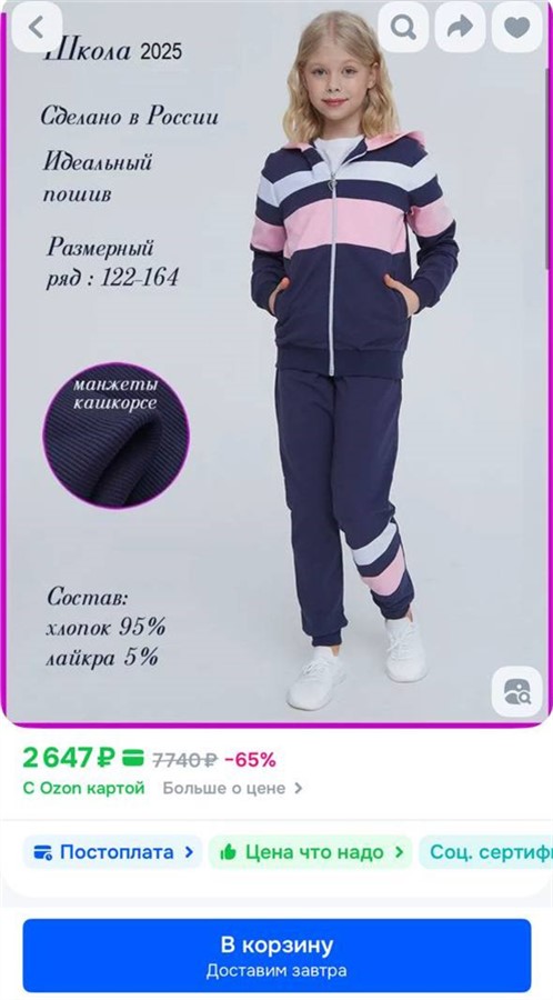 Спортивный костюм для физкультуры можно урвать за 800-900 рублей, но модели из плотного хлопка стоят уже 2600-2700. Пара футболок — это еще около 600 рублей, а набор из 10 пар носков — примерно 540.