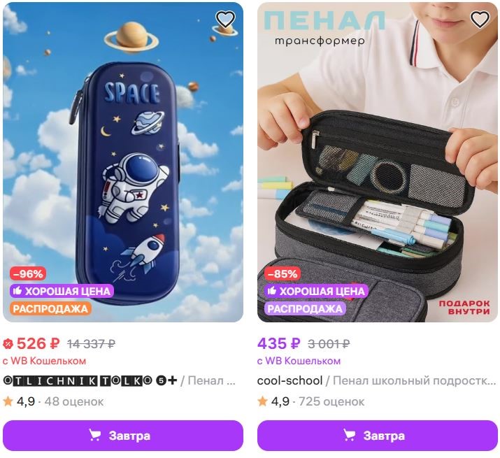 Пенал — отдельная статья расходов и маркетинговых чудес. Простой пенал-косметичка стоит 180-300 рублей. А вот за модные пеналы-трансформеры просят и по 500 рублей, лукаво зачеркивая ценники в 3000 рублей.