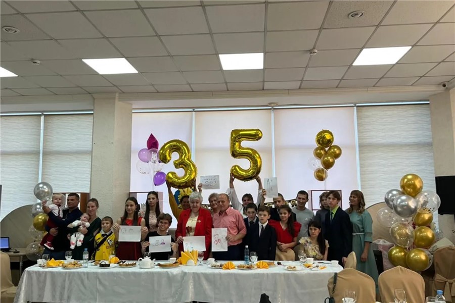 Мы вместе с 80-го года, как познакомились, так и не расставались. В мае исполнилось 45 лет со дня нашей первой встречи, и вот уже как 42 года мы в законном браке. 19 сентября отмечали юбилей — 35 лет со дня основания Семейного детского дома, нашей большой и дружной семьи.