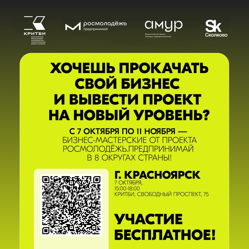 Участие в мероприятии бесплатное. Количество мест ограничено. Подать заявку для участия в Бизнес-мастерской в Красноярске можно по ссылке.