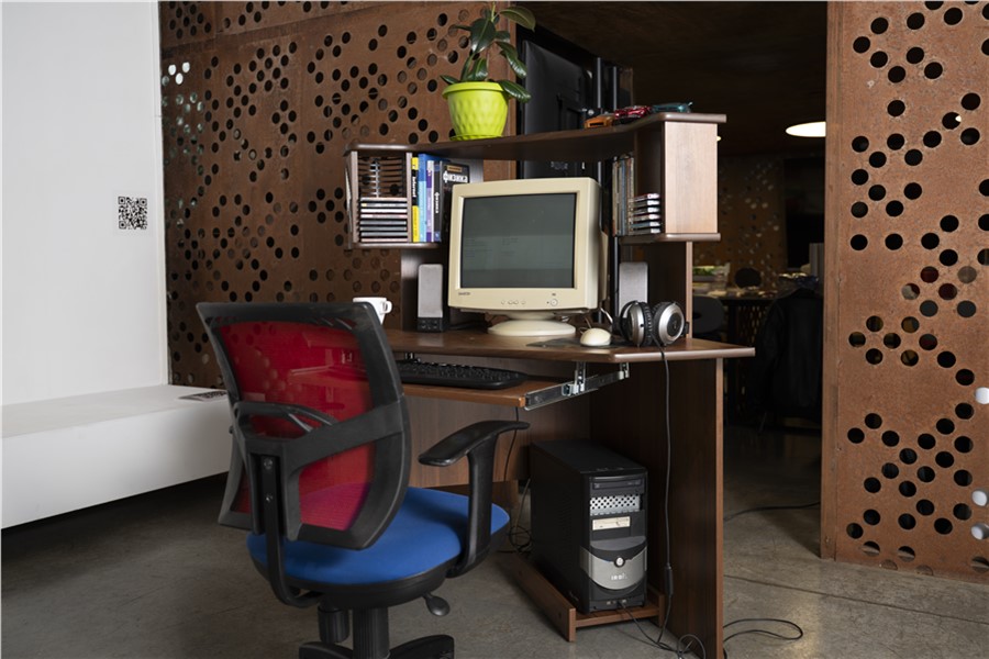 Отдельное место в экспозиции занимает «алтарь» или «портал». Он представляет собой условное рабочее место с компьютером, дисками с популярными лет 20 назад играми, моделями машинок и фикусом. Дополняет его ноутбук с вполне рабочим сайтом, созданным в стилистике 1990-х годов. Именно на сайт перенесен кураторский текст и возможность оставлять комментарии-отзывы.