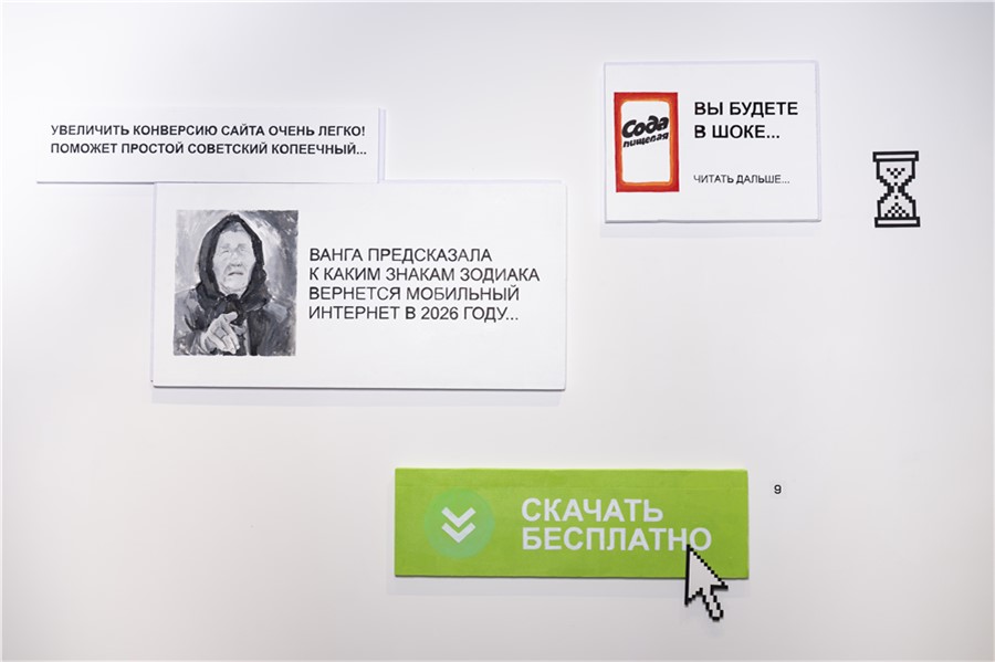 «Условно, выставка у нас разделена на два пространства. В первом мы рефлексируем и немножко, можно сказать, ностальгируем на тему интернета, которого уже нет, а во втором с помощью уже новых современных инструментов приходим к тому, что же с интернетом стало сейчас», — объясняет куратор.