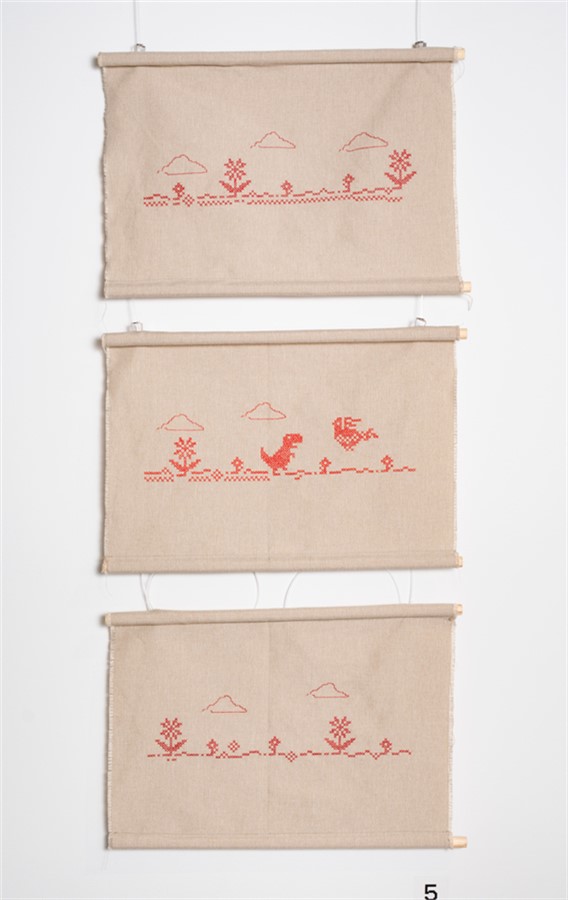 «Она не стремится восстановить прошлое, но созидает его критический образ, сплетая личную память с коллективной мифологией. Её „наивный концептуализм“ — это метод: через рукотворность (вышивка, живопись, текстиль) она работает с цифровыми образами, которые остались не только в памяти, но и в культурном пространстве Сети», — поясняет Надя.