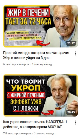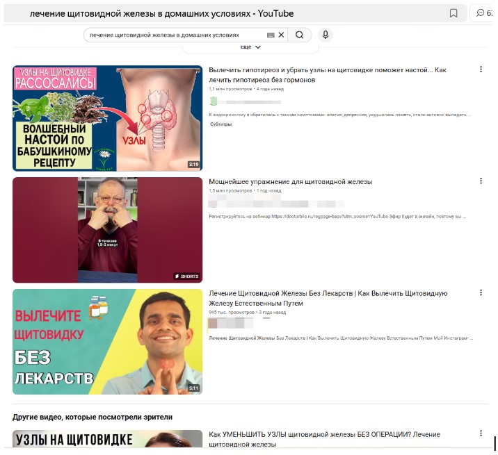 Многим на видеохостингах порой попадаются ролики с советами по решению проблем со здоровьем. Некоторые из них обещают зрителям чуть ли не сверхспособности и фантастически быстрое излечение. Авторы заманивают людей «народными» и дешевыми рецептами, мотивируя тем, что «врачи о них всегда молчат, чтобы пенсионеры тратили половину пенсии на лекарства».