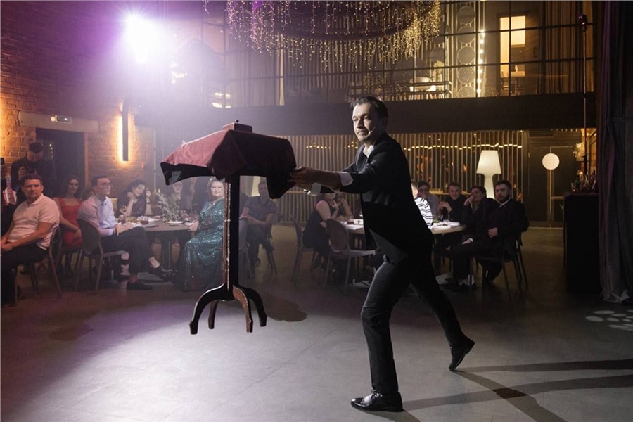 Иллюзионист выступает где угодно — на борту самолета, на корабле, в поле без электричества и даже в пещере. Такой номер украсит корпоратив, свадьбу, юбилей, день рождения или открытие заведения. Эмоции гостей гарантированы!