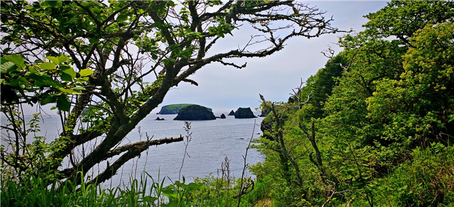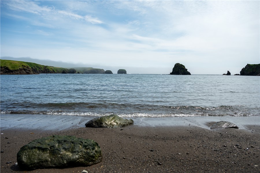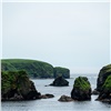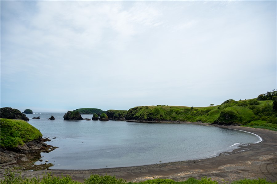 Одних только крупных бухт на Шикотане 15 штук, а тех что поменьше — не сосчитать. Почти в каждой есть узкие уютные пляжики. Самые доступные: Малокурильская и Крабовая, Хромова и Отрадная, — их можно посетить в рамках однодневной пешей прогулки самостоятельно, на катере или авто — с гидом. Из сопутствующих им достопримечательностей отметим маяк на мысу Хромова и трехглавый мыс Трезубец, что на выходе из бухты Отрадной. Правда, его монументальную красоту лучше видно с теплохода или с соседних мысов, каковых на Шикотане также не перечесть. С Волошина и Смелого видны острова Малой гряды, с Углового, Татьяны и Анамы — Кунашир, с Думнова в хорошую погоду еще и Итуруп, ну, а со всех мысов восточного побережья — бесконечность Тихого океана.