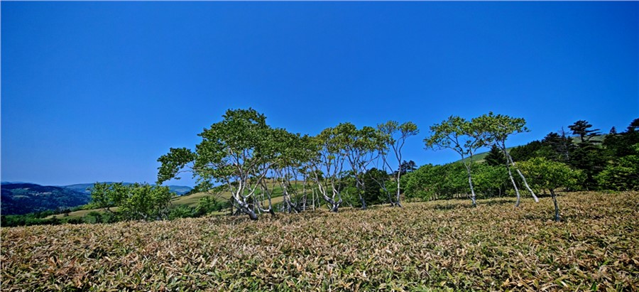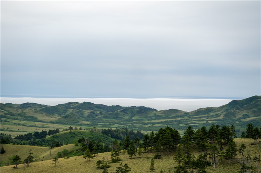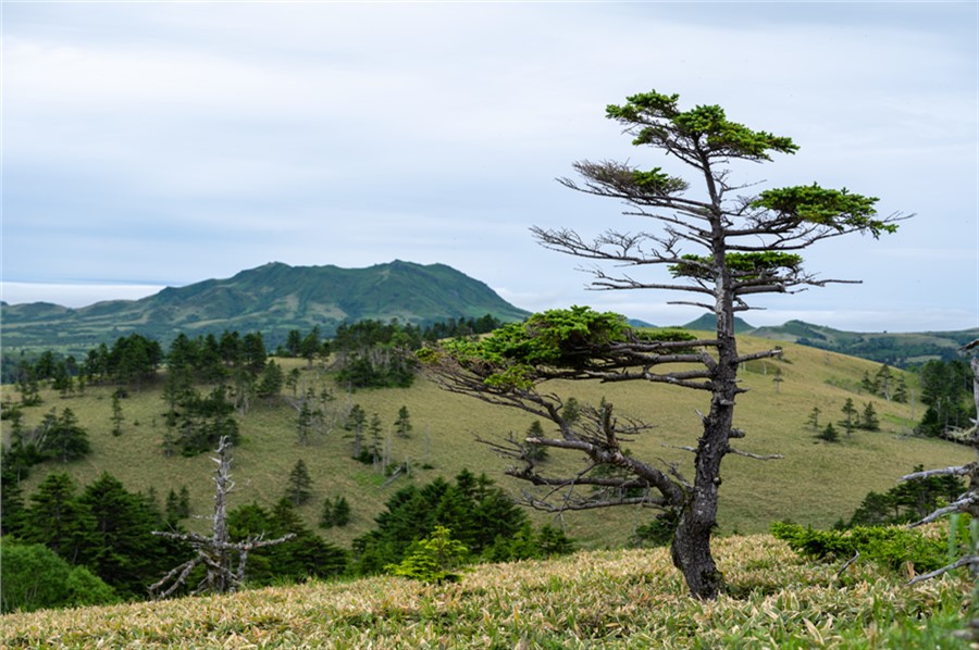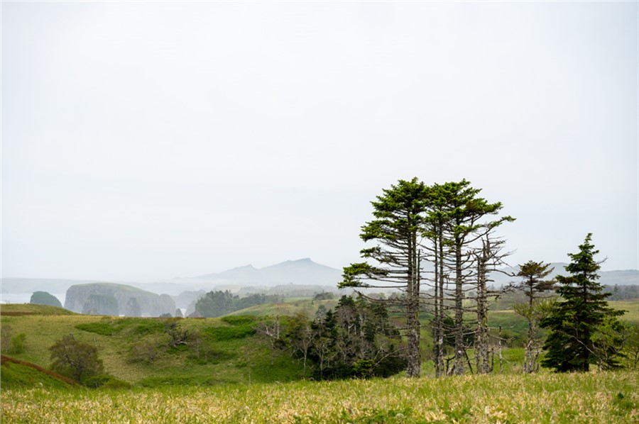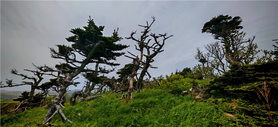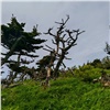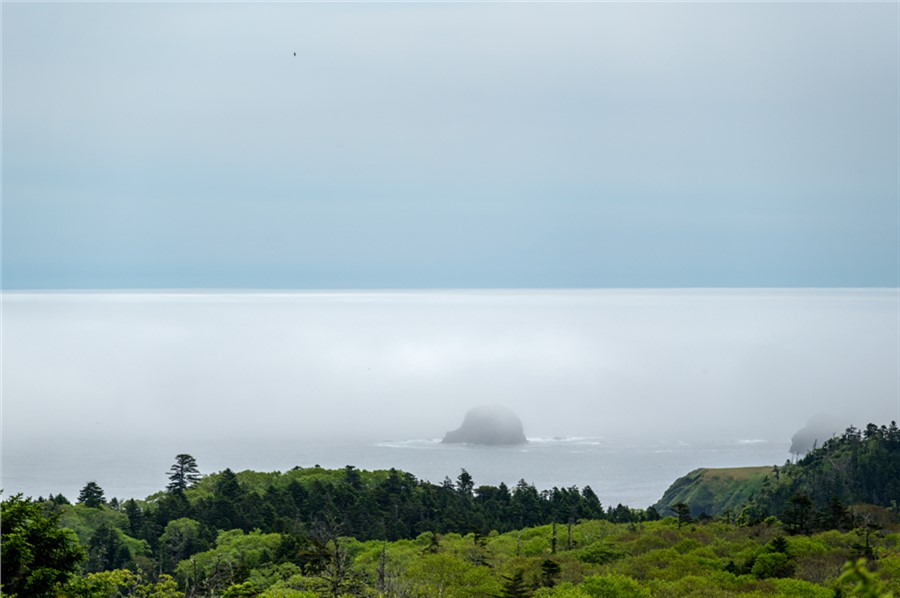 Островная сущность подразумевает постоянство трех вещей — ветра, тумана и дождя. Ветер дует всегда и со всех сторон, меняется лишь его сила. Даже в распадках сопок с подветренной стороны встречаются поваленные тайфуном деревья, а форма крон их коллег, держащихся за камни на утесах, позволяет легко угадать откуда «прилетает» чаще всего. Большая часть Шикотана покрыта ковром вечнозеленого бамбучника (сазы курильской), который под штормовым ветром волнуется не хуже морской поверхности. Зрелище завораживающее, но в мокром состоянии затрудняющее передвижение, несмотря на то, что бамбучник здесь вырастает чуть выше колена, в отличие от трехметрового сахалинского.