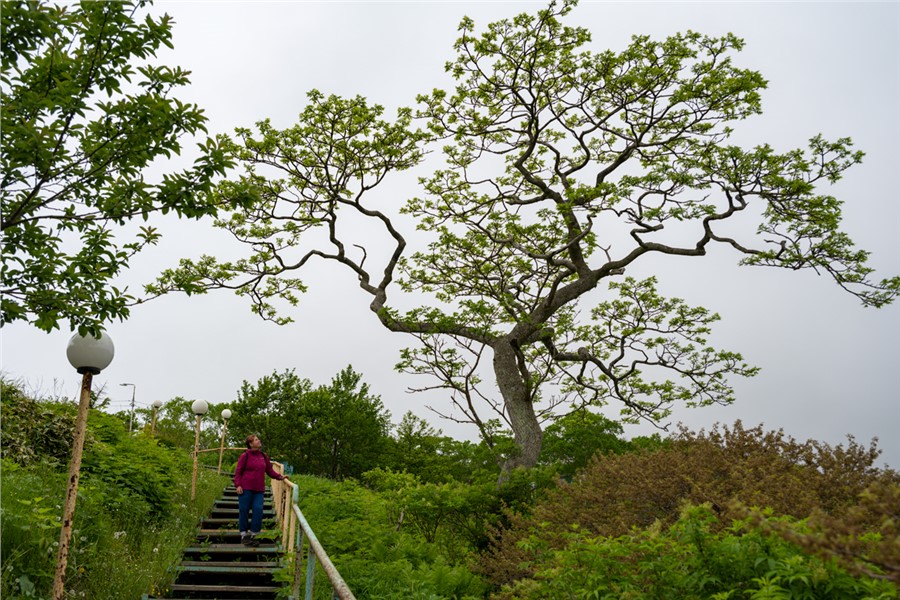 Сегодня проход на сопку свободный. Либо по короткой крутой тропе от водохранилища в Малокурильском до видовки над бухтой Канатка и далее до вершины — это около 2,5 км, либо по лесной, более пологой дороге длиной около 7 км сначала вдоль речки Отрады, а после 3-го брода — налево в гору по указателю. Оба маршрута крайне живописны и физически энергозатратны.