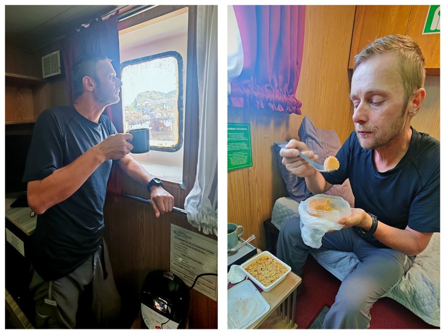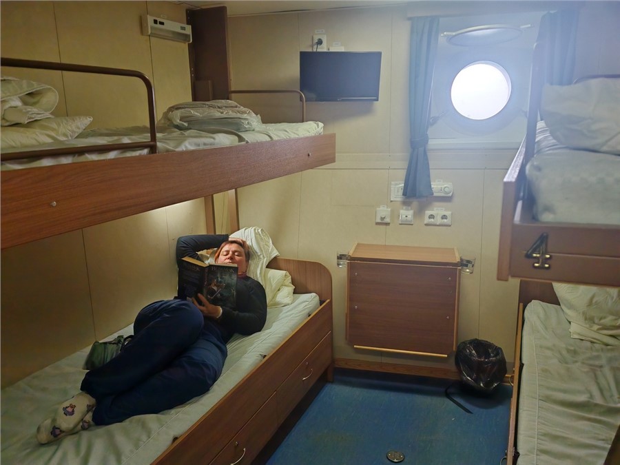 Самое грустное — полное отсутствие звукоизоляции в каютах всех классов, буквально, слышно, как за стенкой кто-то ковыряет пальцем в носу. Из плюсов, конечно же, потрясающие виды: море и океан, косатки и дельфины, серебристые косяки рыб и парящие на уровне глаз чайки, огни поселков и судов, вулканы и мысы островов, закаты и рассветы...