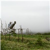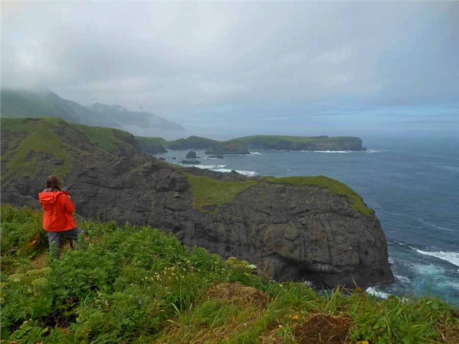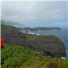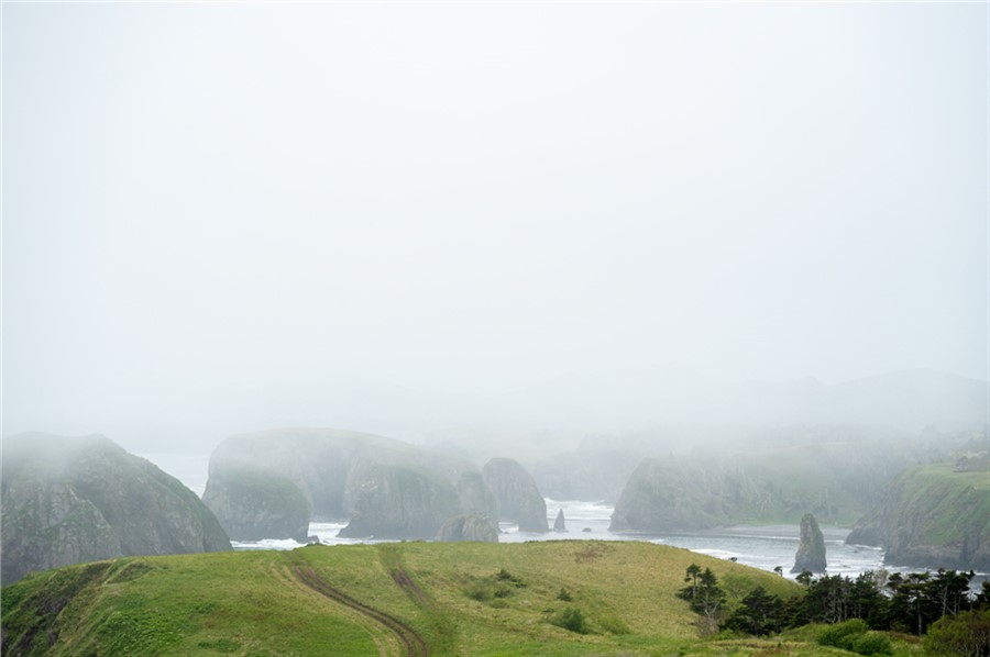В общем, пройти мимо мыса было никак нельзя, но океан нагнал туману и Край света скорее угадывался, чем просматривался. Так что фото пришлось позаимствовать у удачливых друзей. Но мы все равно сфотографировались на фоне мыса, это селфи пополнило коллекцию снимков «Мы на Курилах на фоне культового места, просто верьте на слово». От Шпанберга до Края света около 3 км по полевой дороге.