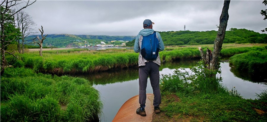 Шикотан — самый гостеприимный из Южных Курил. Здесь нет достопримечательностей из серии «маст си», но зато уютных, домашних локаций — с избытком. Гулять по бухтам, речным долинам и сопкам можно неделями, ставить палатку на берегу Тихого океана, ну, или повыше, но все равно с видом на него. Причем отправиться в поход можно сразу с трапа теплохода, по пути забежав в магазин за газом и недостающими продуктами.