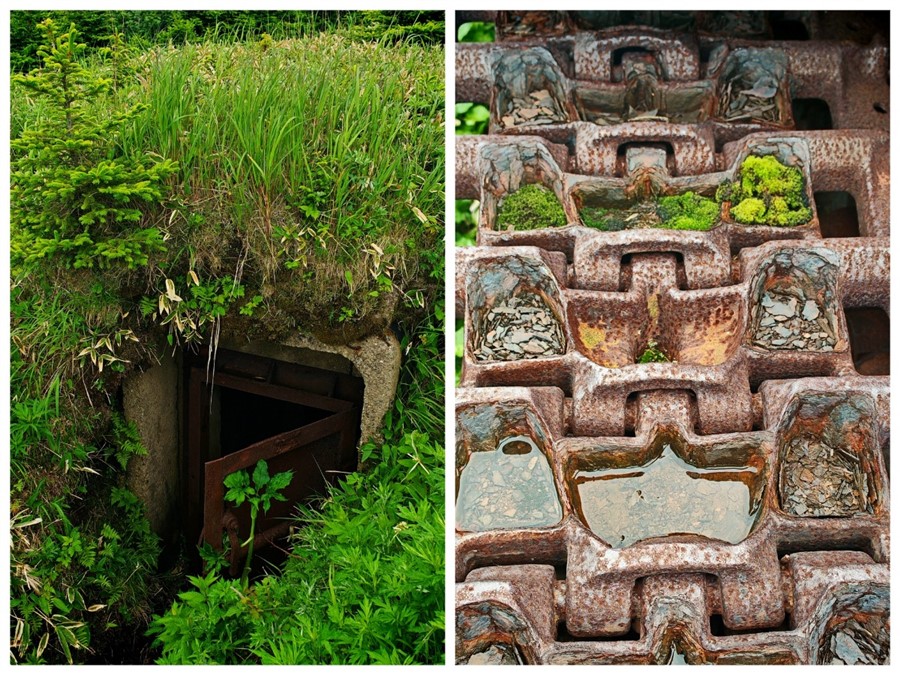 В конце 70-х танки поднялись наверх, после чего их двигатели демонтировали, а в моторных отсеках разместили дополнительный боекомплект. До 1994 года все здесь было в полной боеготовности, жили люди, проходили учения, пристреливали орудия. Сегодня остатки жилых и служебных помещений, опоры ЛЭП, спортплощадка, аппарели и траншеи, соединяющие капониры, заросли бамбучником, а основная дорога, ведущая на высоту 219 м — ольхой. К счастью, есть альтернативная — от устья реки Анама, крутая, но короткая.