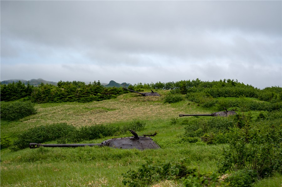 Укреплинии, как японские и советские — одна из визитных карточек Сахалинской области. Шикотан стоит особняком: ввиду его малых размеров, кажется, будто остров целиком «ощетинился» РТОТ — ротами танковых огневых точек, призванных подавлять огнем десант потенциального противника. Танковые капониры разбросаны по сопкам и мысам по всему периметру Шикотана, идеально вписаны в ландшафт и по своему фотогеничны. Самая доступная РТОТ — батарея из 9 тяжелых танков ИС-3 и одного ИС-2 40-х гг выпуска, что прикрывает Крабозаводское с безымянной высоты, народное название которой — Танковая сопка.