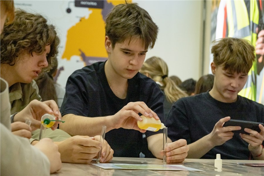 Современная профориентация всё реже похожа на скучные лекции. На площадке «Полюса» теорию сразу подкрепляли практикой. Школьники могли сами промывать породу в лотках, чтобы понять принцип отделения золота, рассматривать в микроскоп настоящие образцы руды и даже проводить химические опыты по извлечению благородных металлов.
