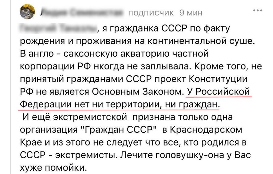 Важно понимать: в августе 2022 года Министерство юстиции РФ внесло движение «граждан СССР» в список экстремистских организаций, его деятельность на территории страны запрещена.