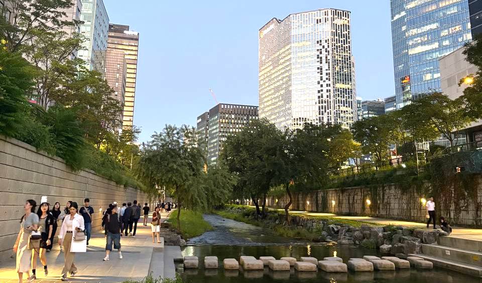 Через центр Сеула течет ручей. Когда-то его воды спрятали в бетонные трубы и похоронили под двухъярусной автомагистралью. Однако 20 лет назад власти решили освободить ручей, и на месте бетонного коридора сегодня раскинулся 11-километровый ландшафтный парк.