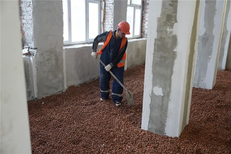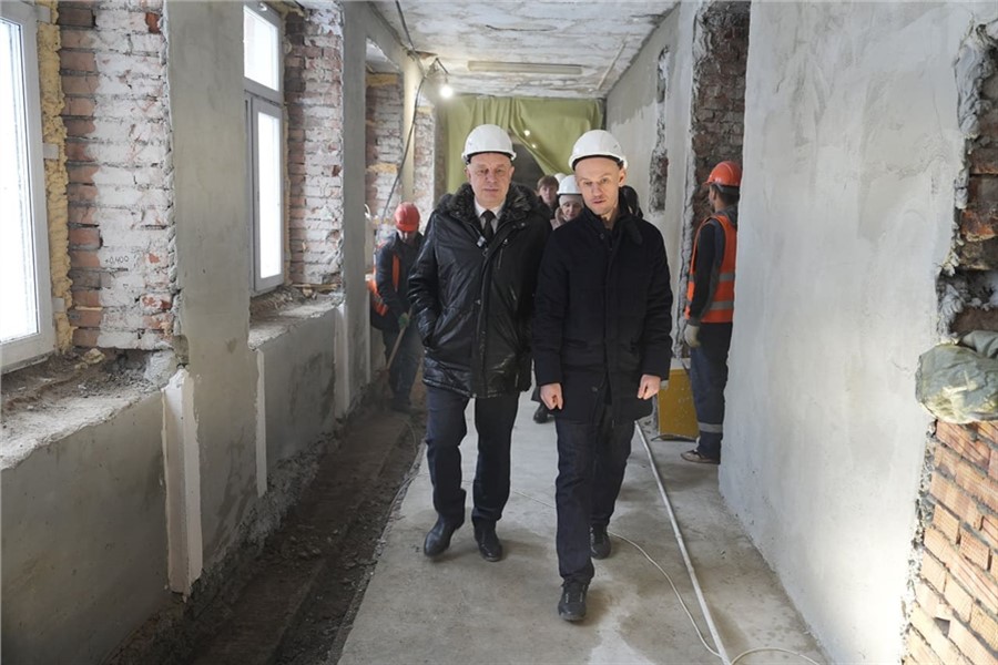 Работы начались в 2024 году. На сегодняшний день полностью укреплены фундамент и перекрытия второго и третьего этажей, обновлена кровля. Внутри завершается монтаж перегородок и штукатурные работы, ведется устройство систем водоснабжения, канализации, электроснабжения и вентиляции.