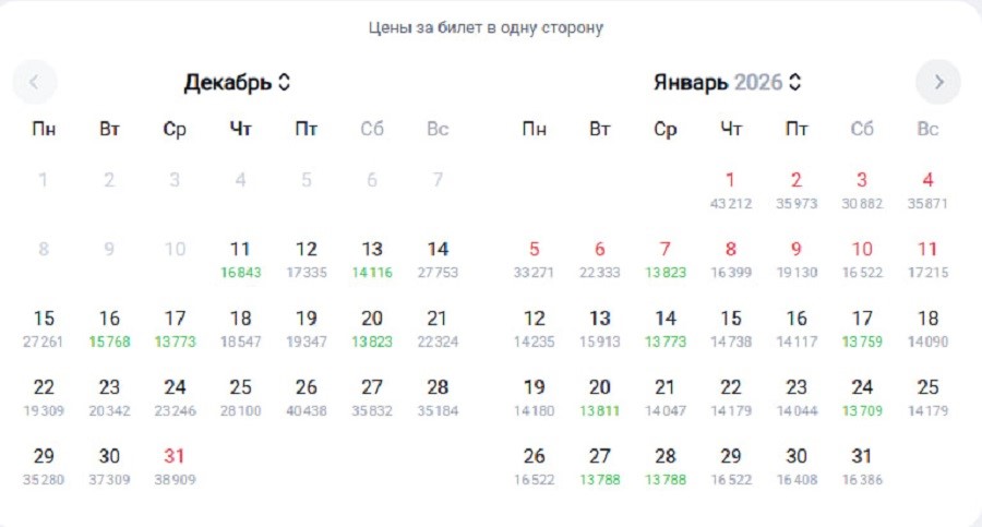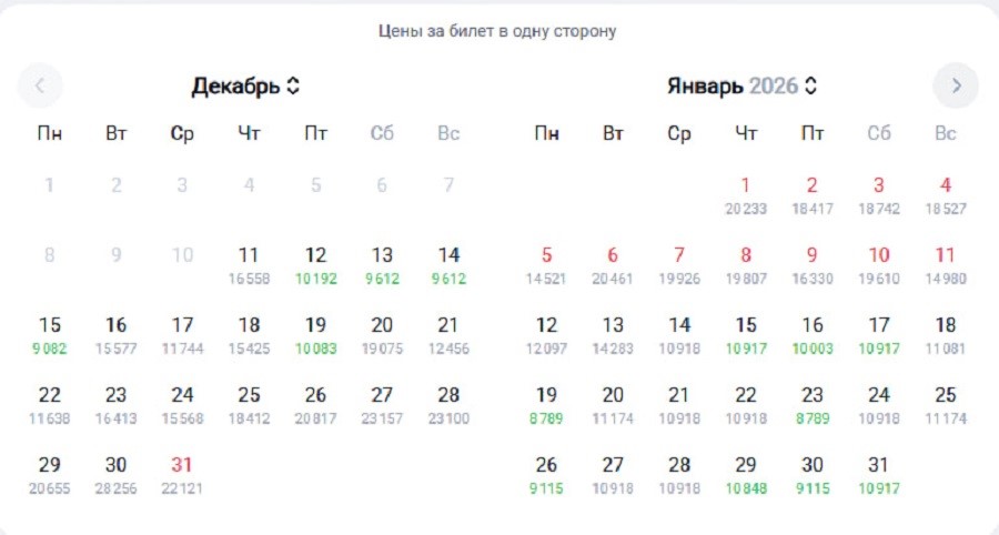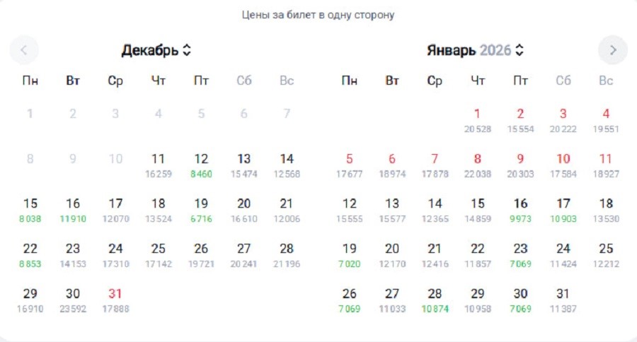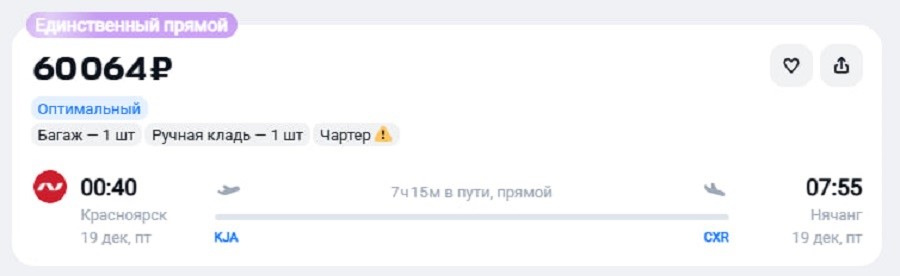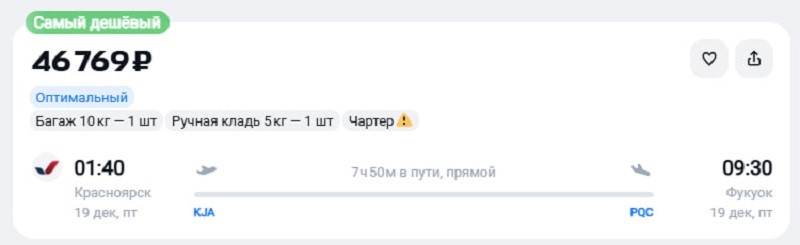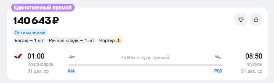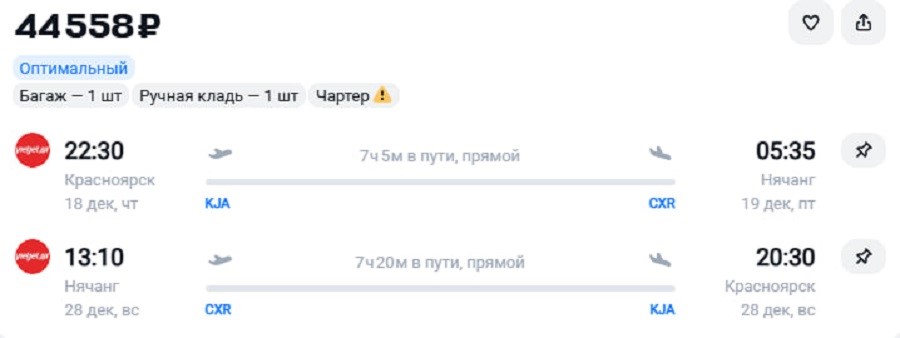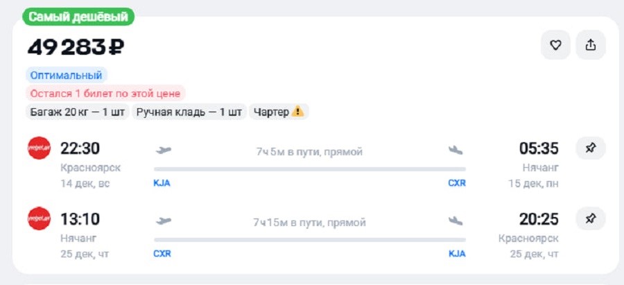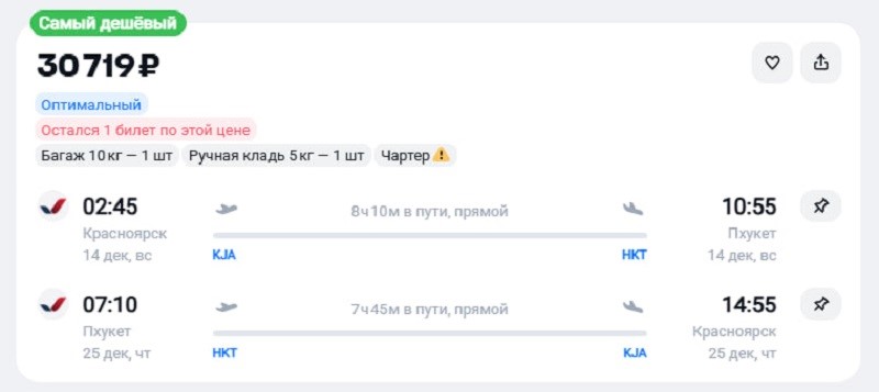 Во второй половине декабря улететь чартером на отдых из Красноярска можно в Таиланд и Вьетнам. Недорогие билеты есть на Пхукет, в Нячанг и Фукуок. Без пересадок при желании также можно добраться до ОАЭ и ГОА, правда уже из Новосибирска.