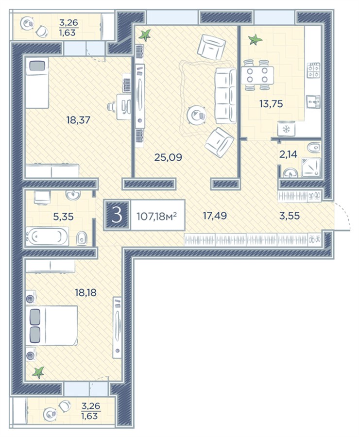 Жилой комплекс включает в себя 20 домов с уникальными планировками квартир, в том числе, двухуровневые, комфорт- и премиум-класса. У каждого дома закрытый двор, что обеспечивает дополнительную безопасность жителей. На первых этажах размещены коммерческие помещения: аптеки, салоны красоты, фитнес-студии, кофейни и стоматологии.
