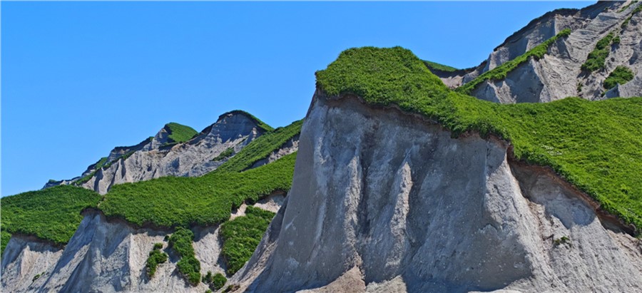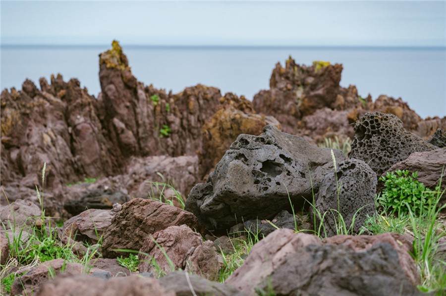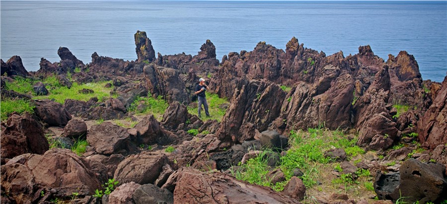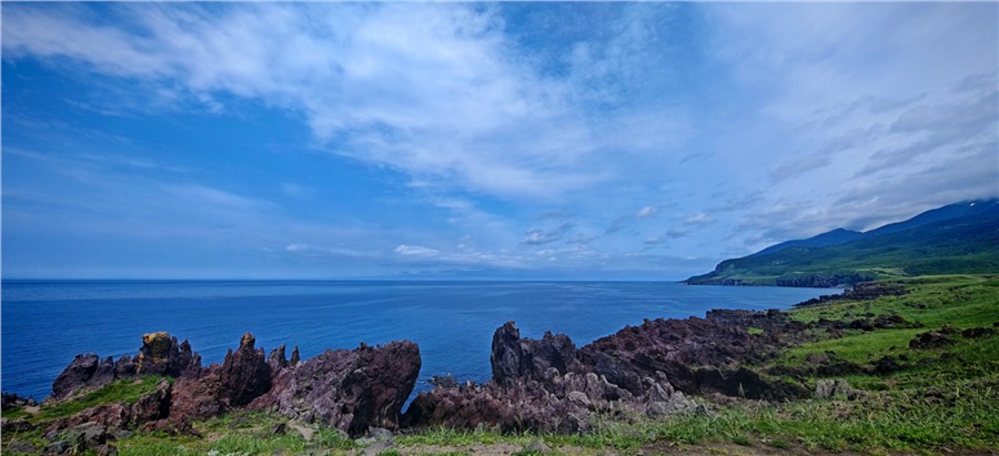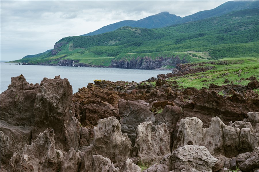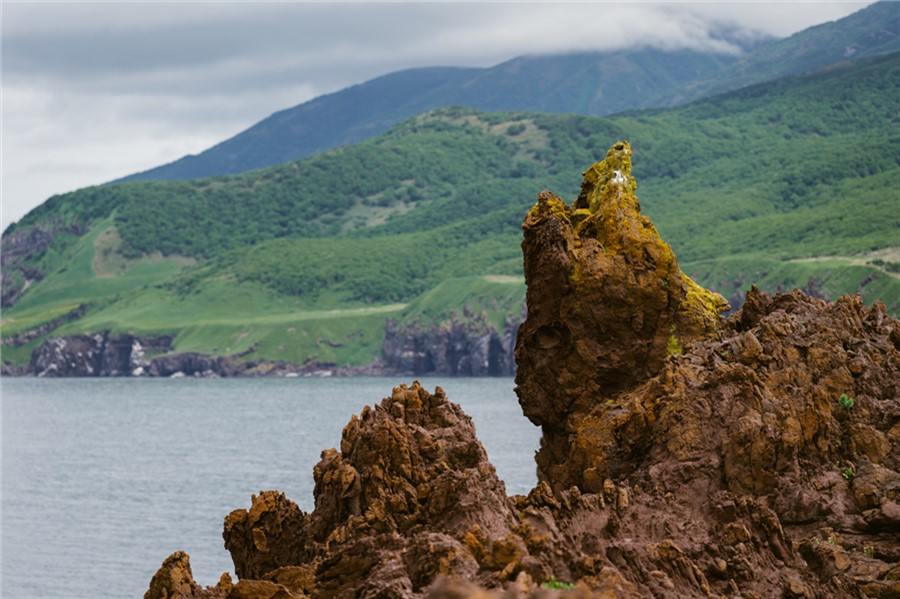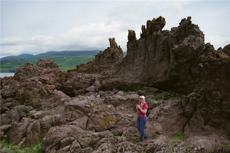 Из Китового в ясную погоду хорошо просматриваются «руины» замков и крепостных стен, колонн и зооморфных фигур обрывающихся в Охотское море с высоты 40 метров. Вблизи все еще великолепнее — черная, рыжая, красная и коричневая ноздреватая лава, некогда стекавшая со склона вулкана Хмельницкий, располагает к неспешному осмотру и вдумчивым фотосессиям. Неудивительно, что на Янкито в 2022-м были найдены остатки первого на Итурупе поселения возрастом около 8 тысяч лет.