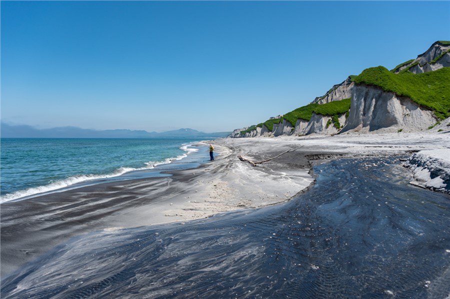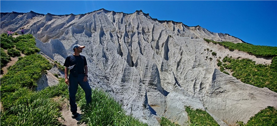Главная причина и самая культовая островная фотолокация — Белые скалы в заливе Простор. От села Рейдово до начала урочища 15 км, само оно тянется еще примерно 5 км — «бараньими лбами» и уютными закутками, прикрытыми буйной зеленью. Пемза, хрустящая под ногами, шарики пемзы, окатанные морем и череда белых стен пемзы, острыми вертикальными гребнями застывших над черным песком 20 тысяч лет назад... Тогда лава из вулкана, стекавшая в море, остывала и пенилась под действием собственных газов, превращаясь в пористое вулканическое стекло нежно-кремового оттенка. В солнечную погоду при чистом небе пемза кажется белой. И это — полный восторг!