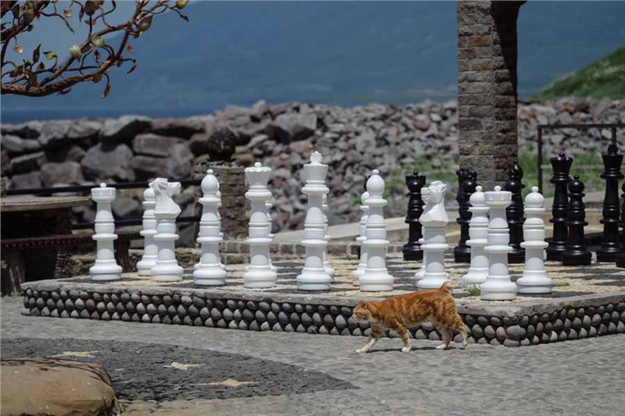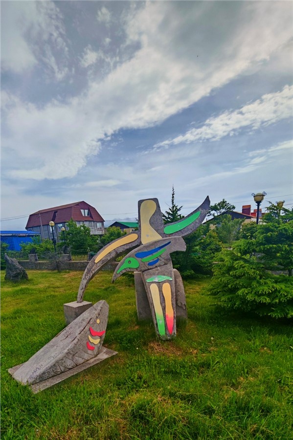 Итуруп благоустроен намного круче, чем Шикотан и Кунашир. Здесь даже есть набережная, точнее, 2,5 километра променада между Курильском и Китовым, где имеются лавочки для любования закатами безумных расцветок, пёсики для чесания за ушком, бургерная и кофейня с открытками, которые можно подписать и здесь же опустить в почтовый ящик. С променада открывается вид на морпорт и одинокий валун в море, на котором вечерком обязательно возлежит то ларга, то сивуч, то еще какая-нибудь милая зверушка. В Курильске обустроено несколько скверов, на его улицах, а также в Китовом и Рейдово выставлены арт-объекты — наследие международного конкурса геодизайна «Итуруп Стиль», который прошёл на острове в 2017 году. На месте и памятники ушедшей эпохи, и музей. А еще, Итуруп — единственный из трех островов, где заморочились дизайном сувениров, а не понадеялись только на икру и рыбу.