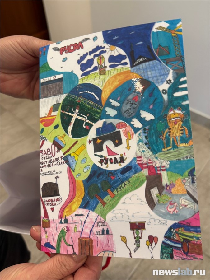 С юными художниками над этим проектом работали опытные педагоги, а также сотрудники РУСАЛа. Они показывали детям видеозаписи с работой завода, рассказывали об особенностях специальностей.