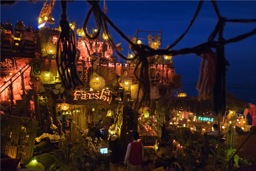 Едут в Farsha совсем не за едой, главная ценность этого места — атмосфера. Сразу после заката кафе преображается: зажигаются сотни лампочек, а на столиках появляются свечи. Все округ начинает выглядеть так, будто ты оказался внутри восточной сказки — немного нереальной и очень красивой.